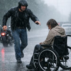 PART 1 — THE NIGHT THAT WAS SUPPOSED TO PASS UNNOTICED The woman in a wheelchair stopped a biker in the rain on a night that was…