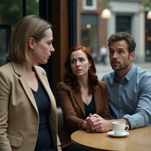 After the medical consultation, Olivia and Max went to the pharmacy, then to the park. Maya followed, but no longer with her former desperation, but rather out of curiosity. At the park, a young woman joined them—Olivia’s sister. She looked very pale and unwell. Maya moved closer, pretending to photograph the ducks in the pond, and managed to overhear part of their conversation.