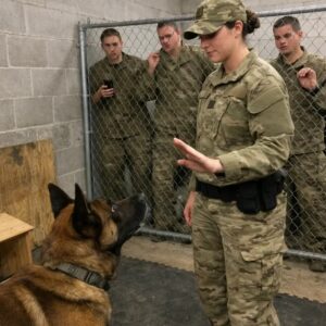 “Hey there,” she said softly, offering water, then food, both of which the dog ignored with a deliberate disinterest that unsettled her more than aggression would have. “Your person is being taken care of. You don’t need to guard this door.”