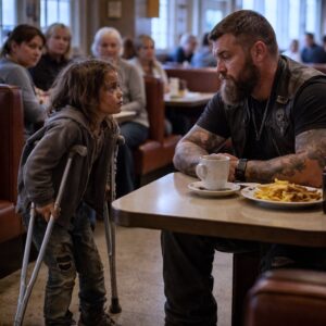 A six-year-old girl dragged herself through a crowded diner on one leg. Her crutches scraped against the floor. Her eyes were hollow, and her ribs showed through…